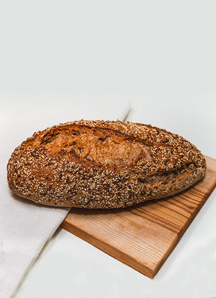 meel ( spelt volkenrenmeel, roggemeel), meel ( spelt volkenrenmeel, roggemeel) (52%) (GLUTEN), gist, zout, Uniplus, koolzaadolie, enzymen, meelverbeteraar E300, water, lijnzaad (3%), sesamzaad (3%), pompoenpitten (3%), zonnebloem pitten (3%).