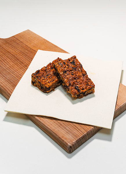 HAVER (23%); Gedroogde vruchten: Sultana's (11%), Rozijnen(10%); Margarine (Plantaardige vetten: Palm, Kokos; Raapzaadolie; Water; Emulgator: Mono- en diglyceriden van vetzuren; Aroma); Gouden siroop; Zaden (Pompoenpitten (3,3%); Zonnebloempitten (3,3%); Lijnzaad (3,3%)); Gecondenseerde magere MELK met suiker (Magere MELK; Suiker); Bruine suiker.
